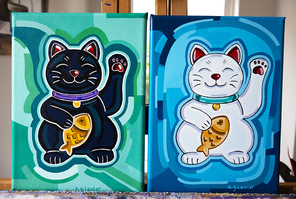 Inspired by traditional lucky cat talismans and reimagined in my signature bold, colourful, and playful style, these paintings are perfect for cat lovers, animal lovers, and anyone who believes in surrounding themselves with joyful, meaningful art. Each piece blends fun, personality, and symbolism—turning your cat into a lucky charm you can treasure forever.