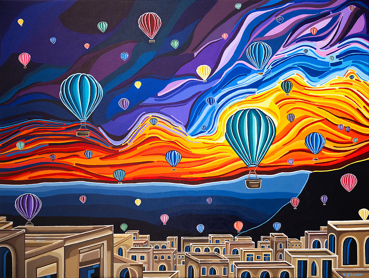 Inspired by the magical skies of Cappadocia, this modern greeting card features a dreamlike scene of colourful hot air balloons drifting over a historic landscape—perfect for sharing uplifting wishes, a sense of adventure, or a thoughtful message to inspire and delight.